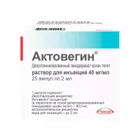 Актовегин 40 мг/мл раствор для инъекций 2 мл ампулы 25 шт