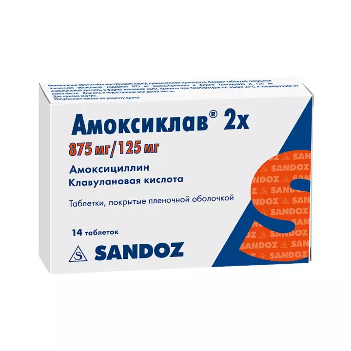 Амоксиклав 2х 875 мг+125 мг таблетки покрытые пленочной оболочкой 14 шт