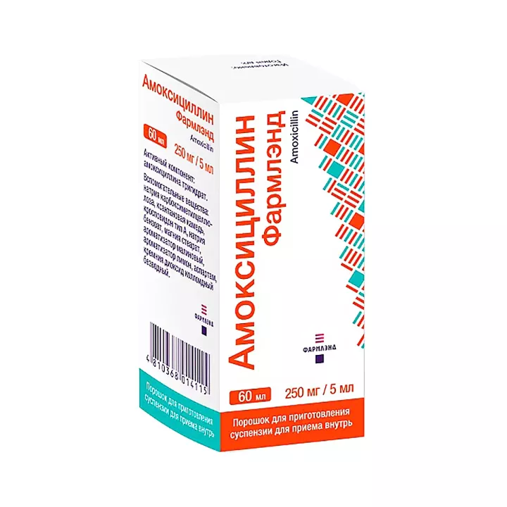 Амоксициллин Фармлэнд 250 мг/5 мл порошок для приготовления суспензии для приема внутрь 60 мл флакон 1 шт