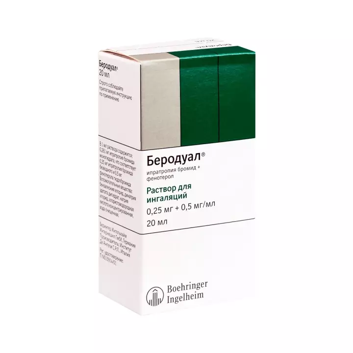 Беродуал 0,5 мг+0,25 мг/мл раствор для ингаляций 20 мл флакон 1 шт