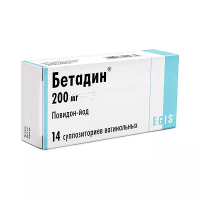 Бетадин 200 мг суппозитории вагинальные 14 шт