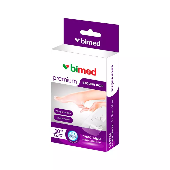Бимед Premium пластырь влагостойкий пористый прозрачный ультра-тонкий вторая кожа 2х7 см 10 шт