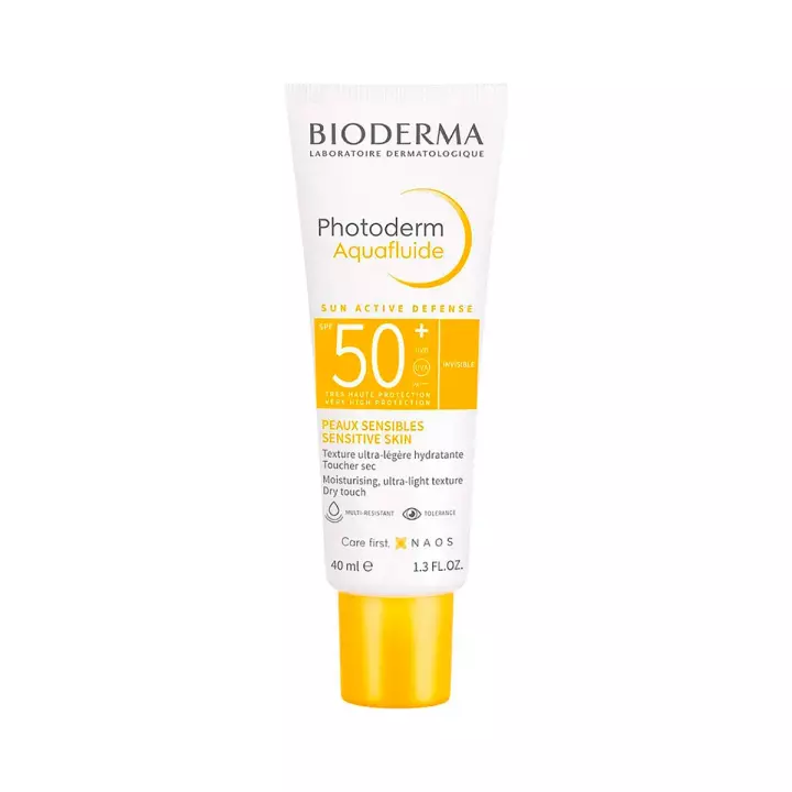 Bioderma Photoderm SPF 50+ Aquafluid — средство с очень высокой степенью защиты, подходит для всех типо кожи, также для чувствительной кожи или кожи, с непереносимостью ко всем типам воздействия солнца, очень светлой кожи с веснушками, кожи, подвергающейся максимальной интенсивности солнца (горы, тропики и т. д.). Этот флюид содержит комбинацию дерматологических фильтров против UVA и UVB. Photoderm max предлагает оптимальную защиту от ультрафиолетовых лучей (солнечные ожоги, солнечная аллергия и т. д.) в сочетании с внутренней биологической защитой: эксклюзивный патент Cellular Bioprotection. Его ультражидкая и сверхлегкая текстура бесцветна при нанесении, не оставляет маслянистой пленки и белых следов.