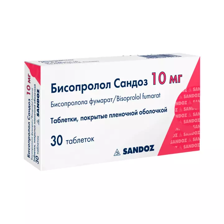 Бисопролол Сандоз 10 мг таблетки покрытые пленочной оболочкой 30 шт