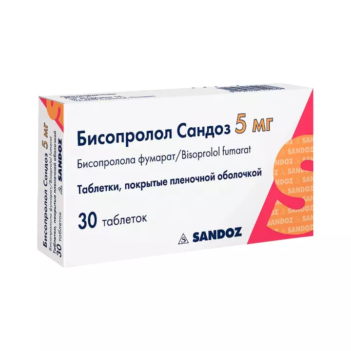 Бисопролол Сандоз 5 мг таблетки покрытые пленочной оболочкой 30 шт