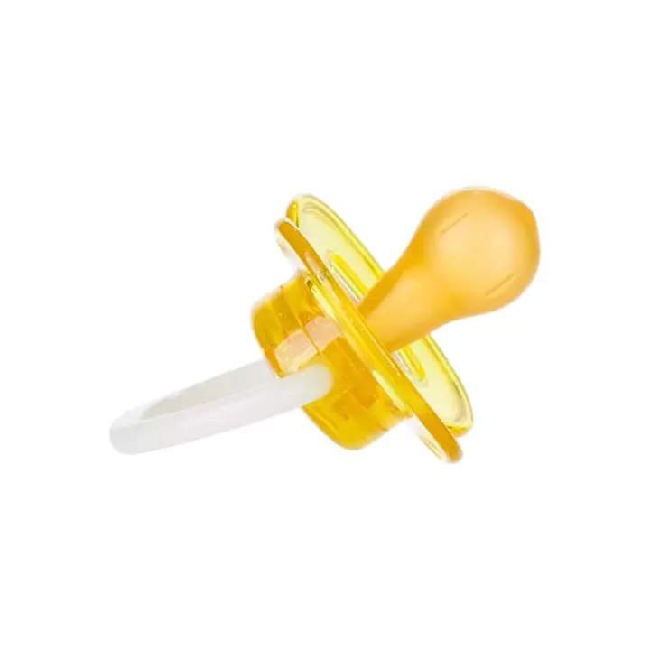 Пустышка латексная круглая произведена из натурального каучука с характерным вкусом и запахом. Профилированная форма основания пустышки позволяет ребенку свободно дышать через нос. Отверстия в основании обеспечивают свободное прохождение воздуха и предотвращают раздражение чувствительной кожи ребенка. Приятный дизайн обязательно понравится вашему малышу. Кольцо пустышки светится в темноте, что очень удобно для поиска пустышки ночью. Без бисфенола А. Рекомендуемый возраст от 0 до 6 месяцев. Нельзя использовать в паровом стерилизаторе.