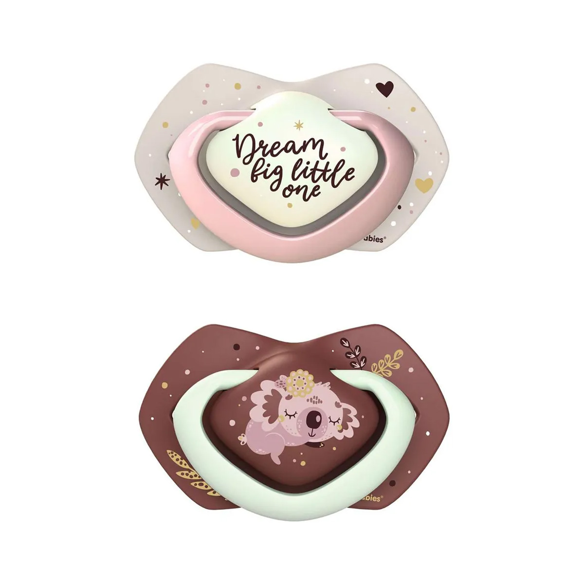 Canpol Вabies Sleepy Koala соска-пустышка силиконовая симметричная со светящимися элементами 0-6 месяцев розовая 2 шт
