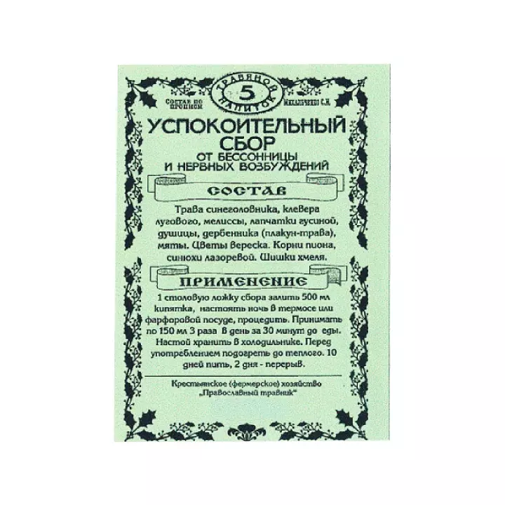 Чайный напиток №5 Успокоительный 100 г пакет 1 шт Православный травник