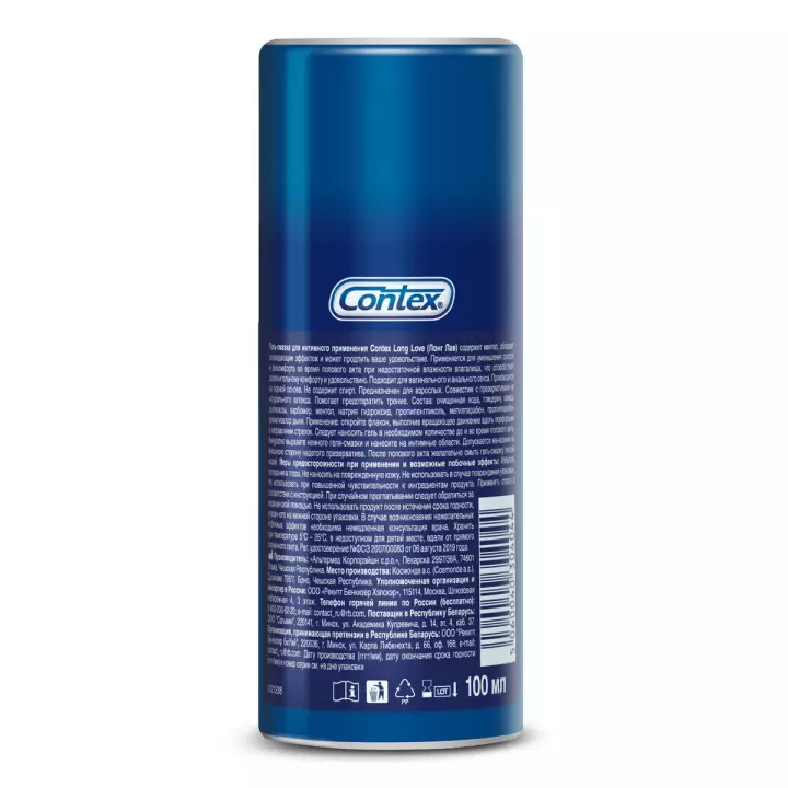 Гель-смазка для интимного применения Contex Long Love (Лонг Лав) cодержит ментол, обладает охлаждающим эффектом и может продлить ваше удовольствие. Применяется для уменьшения сухости и дискомфорта во время полового акта при недостаточной влажности влагалища, что способствует дополнительному комфорту и удовольствию вашим сексуальным отношениям. Подходит для вагинального и анального секса. Производится на водной основе. Не содержит спирт. Предназначен для взрослых. Совместим с презервативами из натурального латекса. Помогает предотвратить трение.