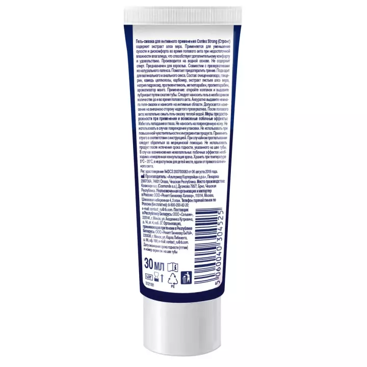 Гель-смазка для интимного применения Contex Strong (Стронг) cодержит экстракт алоэ вера. Применяется для уменьшения сухости и дискомфорта во время полового акта при недостаточной влажности влагалища, что способствует дополнительному комфорту и удовольствию. Производится на водной основе. Не содержит спирт. Предназначен для взрослых. Совместим с презервативами из натурального латекса. Помогает предотвратить трение. Подходит для вагинального и анального секса.