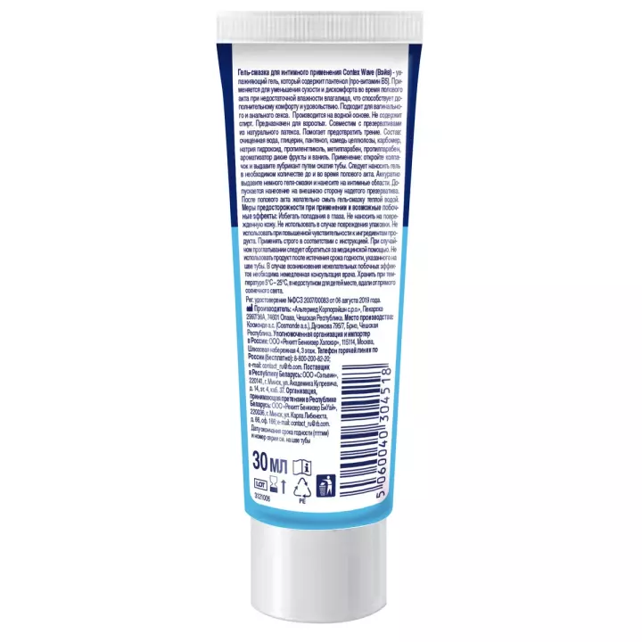 Contex Wave интимный гель-смазка увлажняющий с пантенолом туба 30 мл 1 шт
