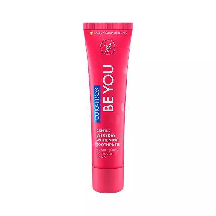 Отбеливающая зубная паста с цветными микрогранулами осветляет эмаль, освежает дыхание и обеспечивает полноценный ежедневный уход за зубной эмалью и деснами. Паста со вкусом ягод можжевельника и хурмы от знаменитого швейцарского бренда подходит для всей семьи, в том числе для детей от 3-х лет. Curaprox Be You отличается эффективным и безопасным составом, в котором нет SLS, синтетических загустителей, триклозана, парабенов, искусственных подсластителей, красителей и консервантов. При этом паста содержит целый комплекс натуральных ферментов, растительных экстрактов и минералов.