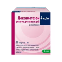 Дексаметазон 4 мг/мл раствор для инъекций 1 мл ампулы 25 шт