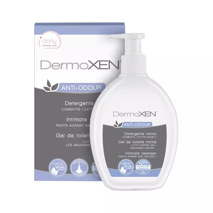 DermoXEN Anti-Odour – гель для интимной гигиены, который специфическим и естественным образом устраняет плохой вагинальный запах, который часто является симптомом дискомфорта и вагинальных инфекций (Candida Albicans, Gardnerella vaginalis). Средство, обогащенное инновационными пребиотическими волокнами натурального происхождения, регулирует вагинальную бактериальную микрофлору и помогает сохранить физиологическую кислотность слизистой влагалища.