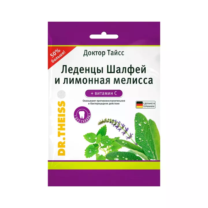 Доктор Тайсс леденцы с витамином С шалфей и лимонная мелисса 75 г пакет 1 шт