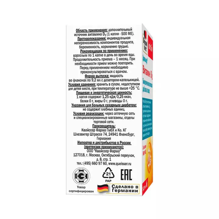 Доппельгерц Актив Витамин D3 500 МЕ жидкость 9,2 мл флакон-капельница 1 шт
