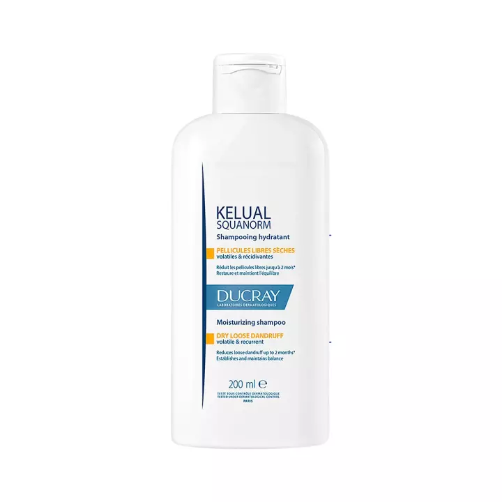 Шампунь от сухой перхоти Ducray Kelual Squanorm (Келюаль Скванорм) с технологией Probiotic Science для мгновенного устранения перхоти помогает снизить избыток кожного сала и дискомфорт кожи головы, придает волосам свежесть, легкость и объем.