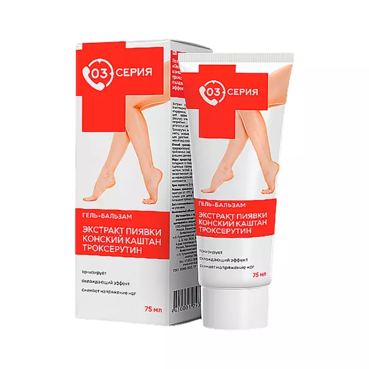 Экстракт пиявки, конский каштан, троксерутин гель-бальзам для ног с охлаждающим эффектом 75 мл 1 шт Серия 03