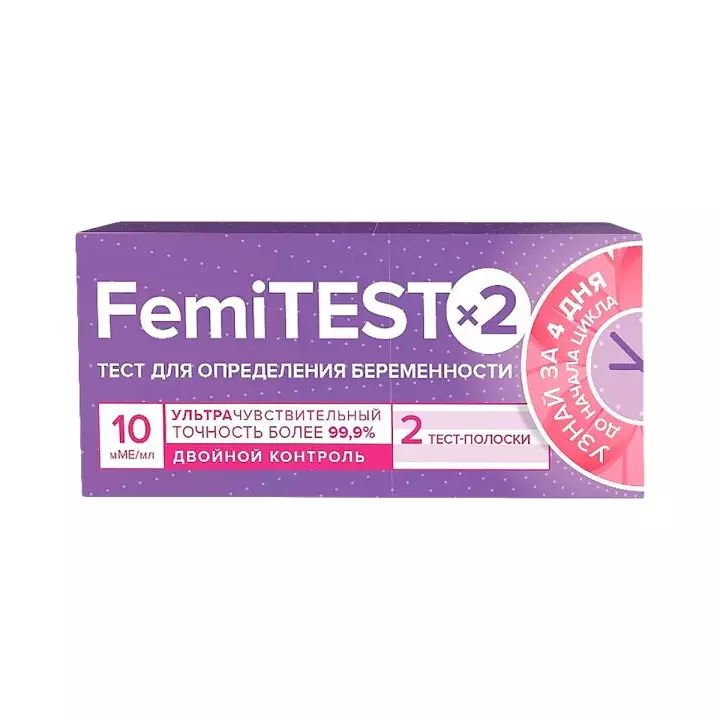 FemiTEST тест для определения беременности 10 мМЕ/мл тест-полоска 2 шт