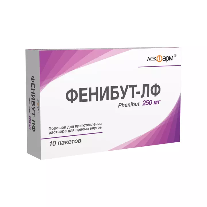 Фенибут-ЛФ 250 мг порошок для приготовления раствора для приема внутрь пакет 10 шт