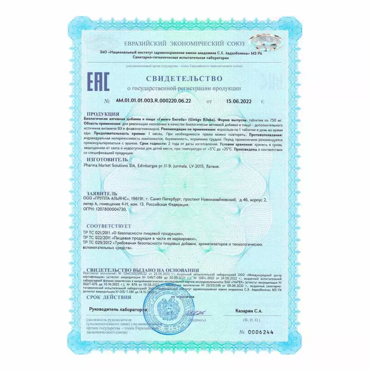 Целлюлоза микрокристаллическая и кальция гидрогенфосфат (носители), экстракт Гинкго Билобы (Ginkgo biloba) 50:1, никотинамид, стеарат магния и диоксид кремния аморфный (агенты антислеживающие).