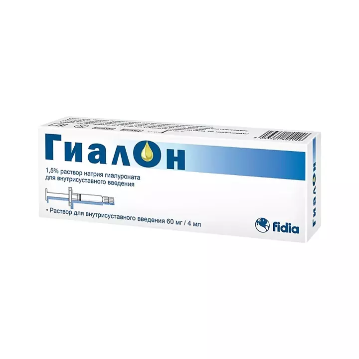 Гиалон (натрия гиалуронат) 60 мг/4 мл раствор для внутрисуставного введения стерильный 4 мл шприц 1 шт Fidia
