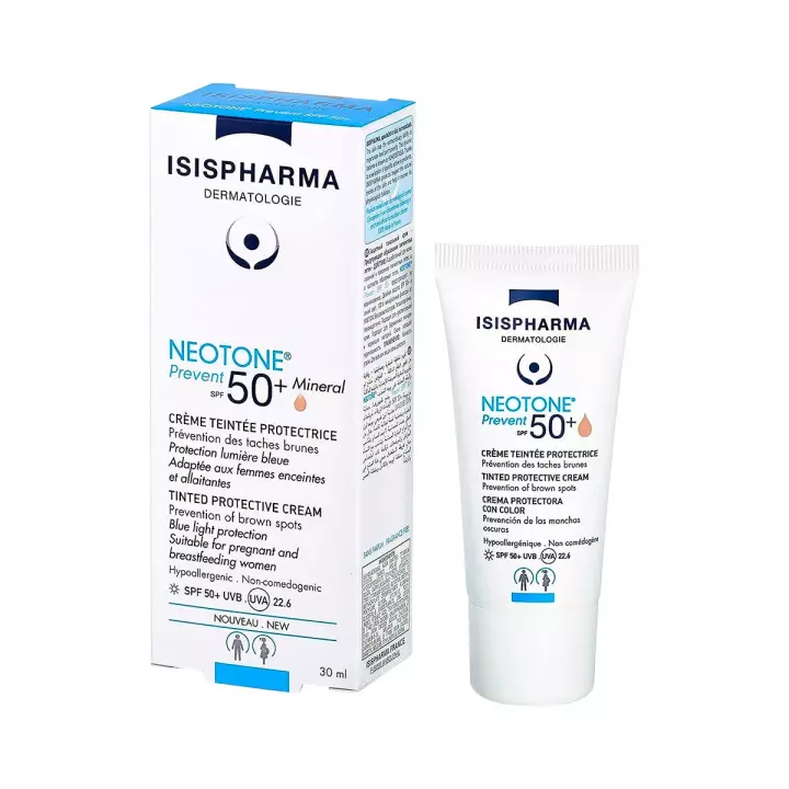 Специально разработанный для кожи, подверженной пигментным пятнам, а также беременных и кормящих женщин, Neotone Prevent Spf 50 + обеспечивает осветляющее действие и предотвращает появление пятен, включая обширные гормональные пятна. Его оптимальное сочетание 100% минеральных солнечных фильтров и активных ингредиентов обеспечивает максимальную переносимость и защищает кожу от солнечных лучей и синего света.