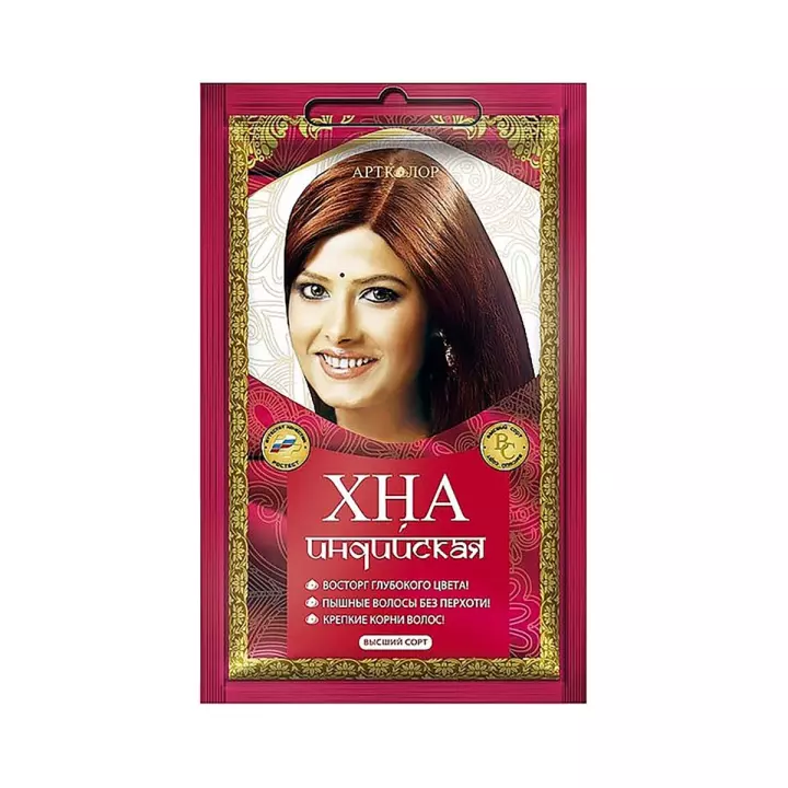 Индийская хна улучшает структуру, предотвращает выпадение волос, укрепляет их корни, устраняет перхоть, зуд, прыщи на коже головы. Пользуясь хной, можно получить полную гамму тонов от золотисто-желтого до темно-каштанового. При использовании хны в сочетании с басмой получаются более темные оттенки. Волосы с проседью окрашивают сначала хной, а затем басмой.