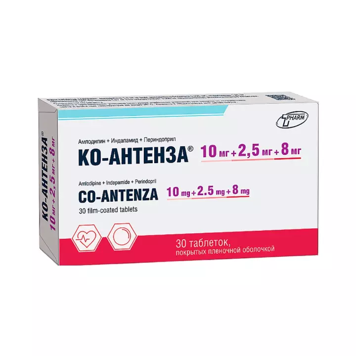 Ко-Антенза 10 мг+2,5 мг+8 мг таблетки покрытые пленочной оболочкой 30 шт