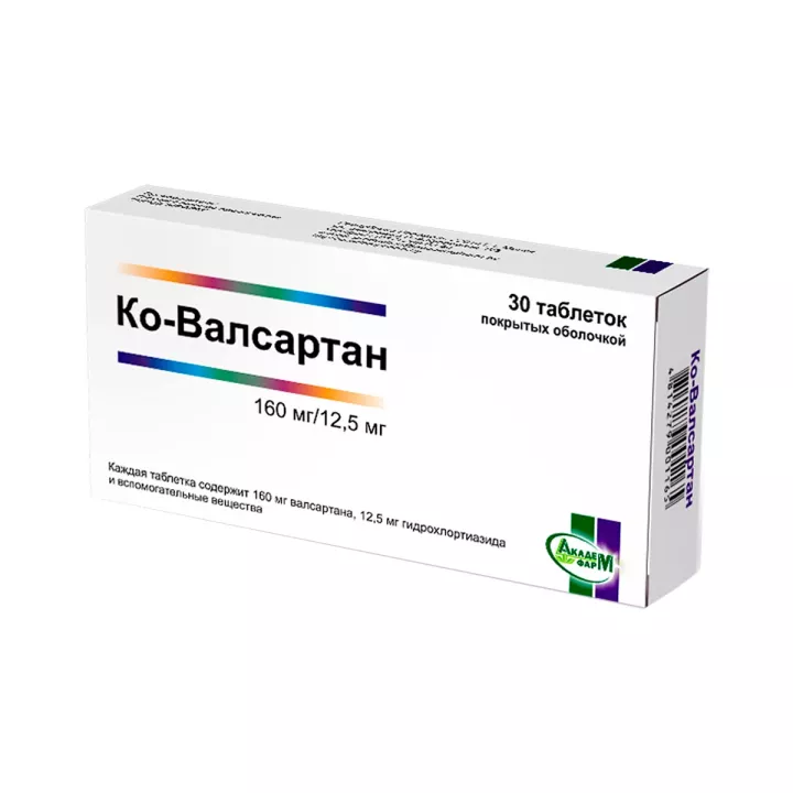 Ко-Валсартан 160 мг+12,5 мг таблетки покрытые оболочкой 30 шт
