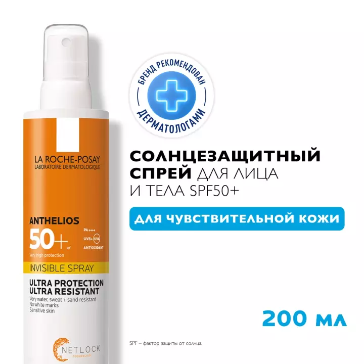 La Roche-Posay Anthelios солнцезащитный невидимый спрей для лица и тела SPF 50+ 200 мл 1 шт