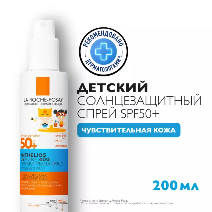 La Roche-Posay Anthelios UVMune 400 Dermo-Pediatrics солнцезащитный детский спрей для лица и тела SPF 50+/PPD 27 200 мл 1 шт