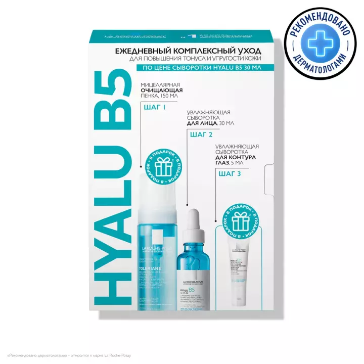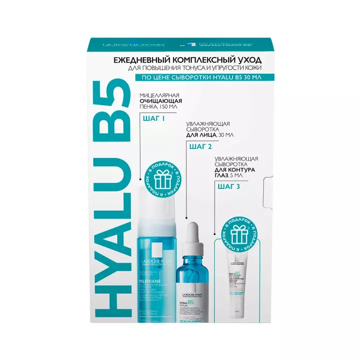 La Roche-Posay набор Hyalu B5 увлажняющая сыворотка 30 мл 1 шт + Toleriane мицеллярная пенка 150 мл 1 шт + Hyalu B5 сыворотка для контура глаз 5 мл 1 шт