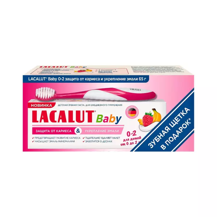 Lacalut Baby 0-2 зубная паста детская 65 г туба 1 шт + зубная щетка детская 1 шт
