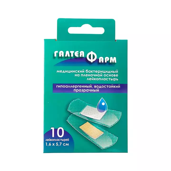 Лейкопластырь медицинский бактерицидный на пленочной основе гипоаллергенный водостойкий прозрачный 1,6х5,7 см 10 шт Галтеяфарм