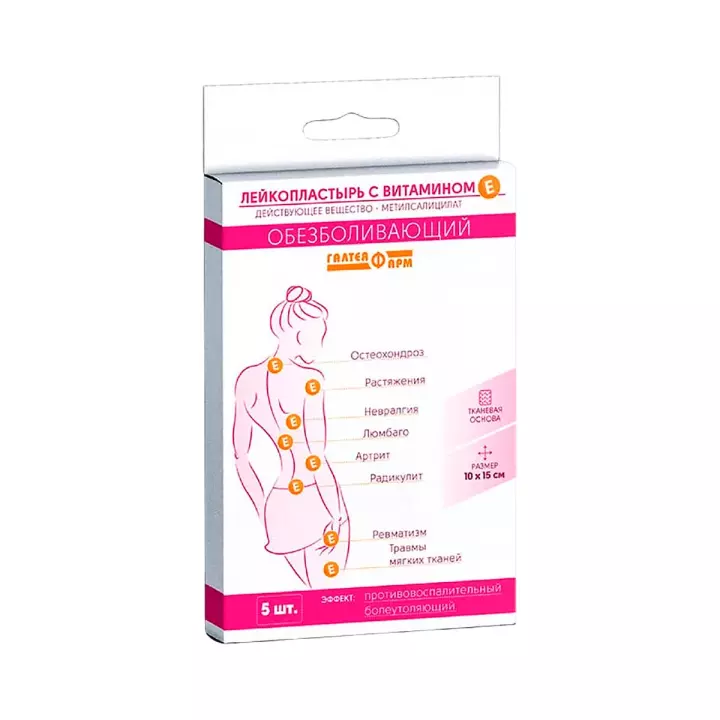 Лейкопластырь обезболивающий с витамином Е на тканевой основе 10х15 см 5 шт Галтеяфарм
