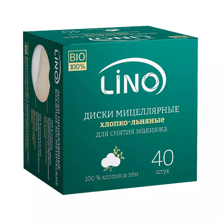 Lino диски мицеллярные хлопко-льняные для снятия макияжа 40 шт