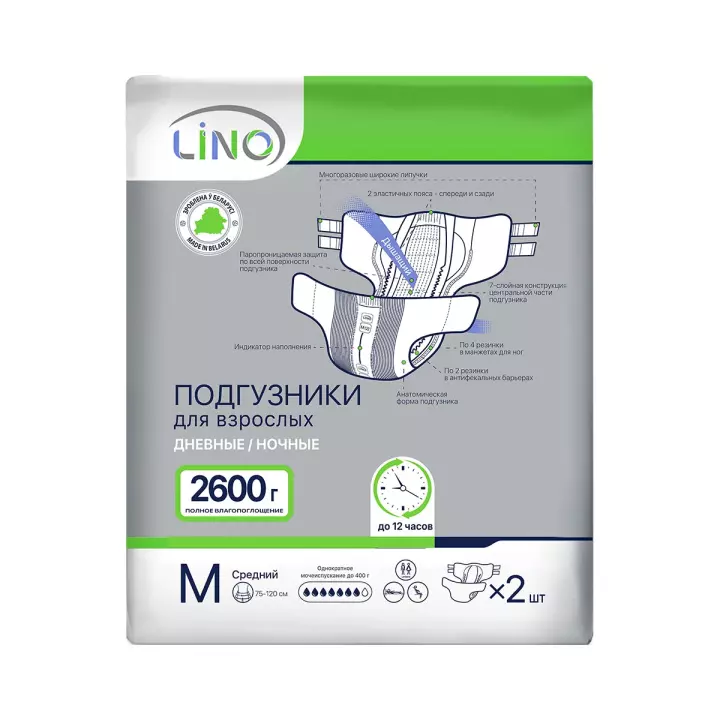 Lino подгузники для взрослых дневные/ночные 2600 мл размер М 2 шт