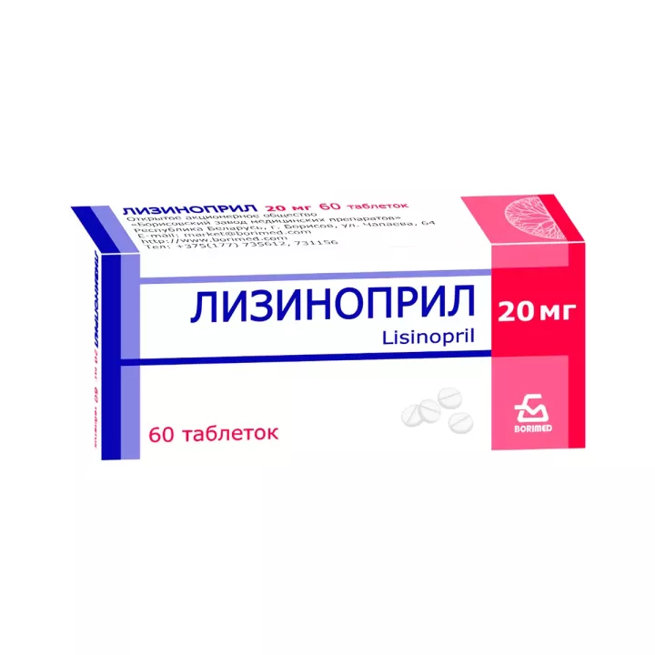 Лизиноприл 20 мг таблетки 60 шт
