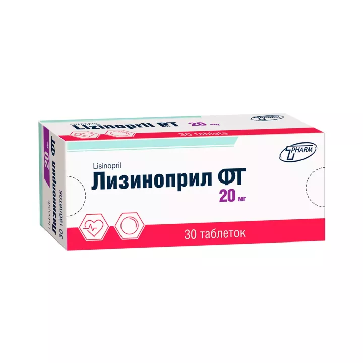 Лизиноприл ФТ 20 мг таблетки 30 шт