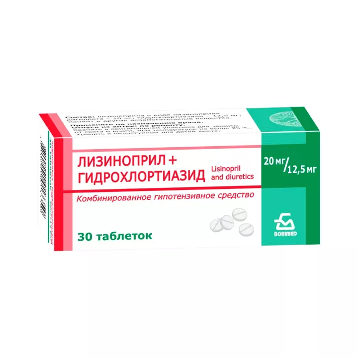 Лизиноприл+Гидрохлортиазид 20 мг+12,5 мг таблетки 30 шт