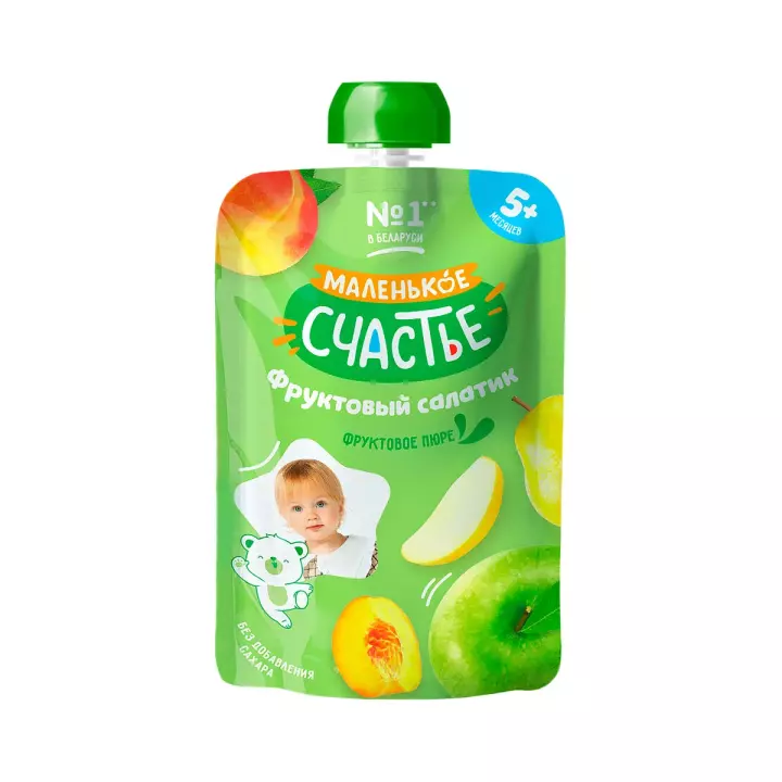 Маленькое счастье пюре фруктовый салатик яблоко-груша-персик 90 г 1 шт