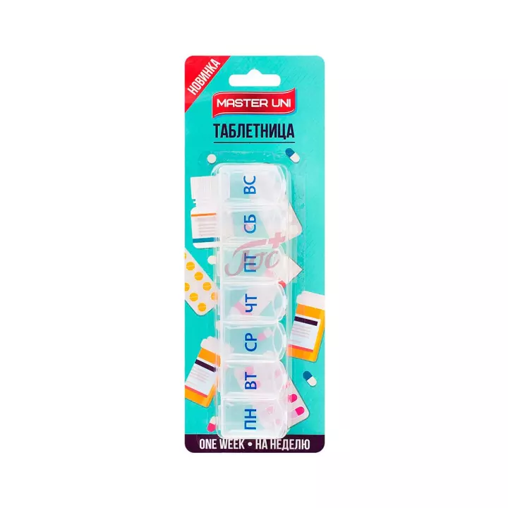 Master Uni таблетница на неделю - 7 подписанных ячеек с символами Брайля, для слабовидящих людей.