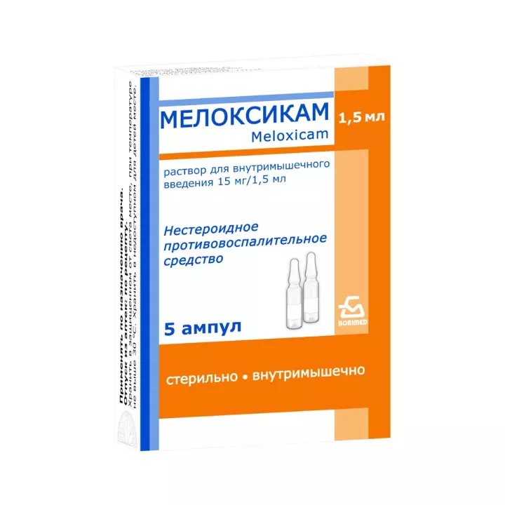 Мелоксикам 15 мг/1,5 мл раствор для внутримышечного введения 1,5 мл ампулы 5 шт