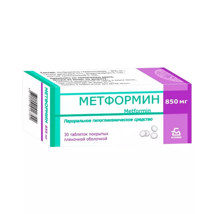 Метформин 850 мг таблетки покрытые пленочной оболочкой 30 шт