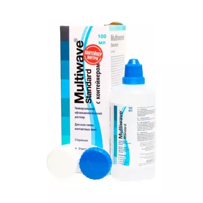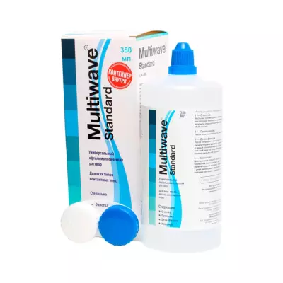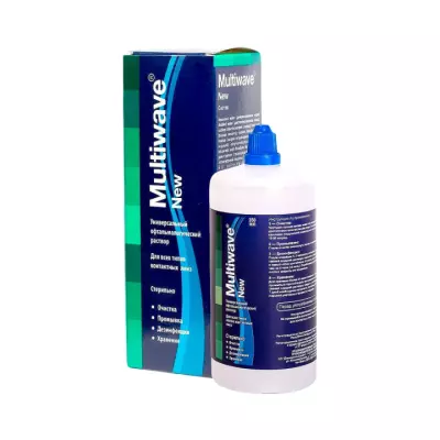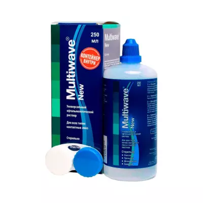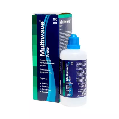 Раствор Multiwave-New предназначается для очистки, бактериостатической обработки, хранения, увлажнения контактных линз любого типа и обеспечивает: