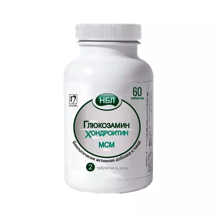 НБЛ Глюкозамина сульфат 750 мг + Хондроитина сульфат 600 мг + Метилсульфонилметан (МСМ) 300 мг таблетки покрытые пленочной оболочкой 60 шт Nobel
