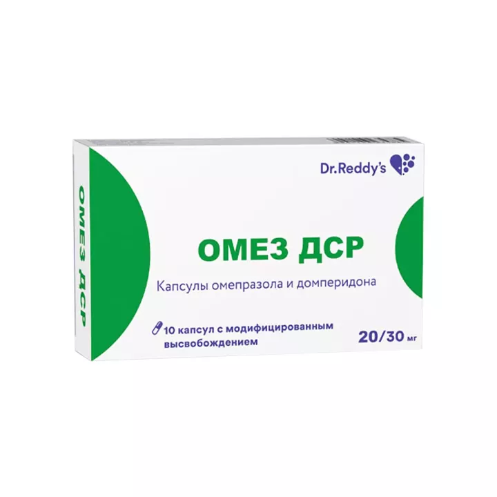 Омез ДСР 20 мг+30 мг капсулы с модифицированным высвобождением 10 шт
