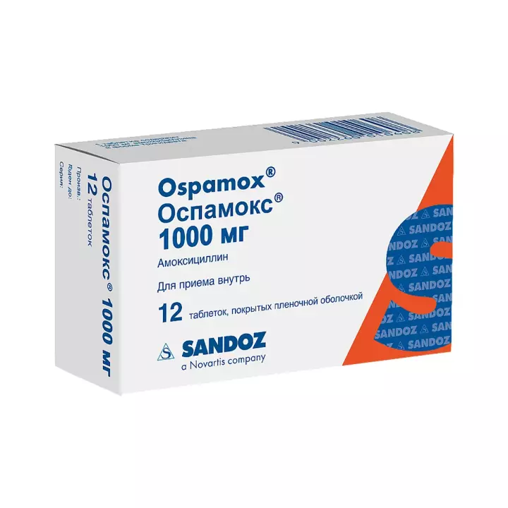 Оспамокс 1000 мг таблетки покрытые пленочной оболочкой 12 шт