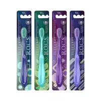 Щетки зубные линейки R.O.C.S. Elegance имеют гладкую обтекаемую форму, немного расширенную к низу. Это обеспечивает надежное удерживание изделия в руке и, соответственно, комфортное использование.